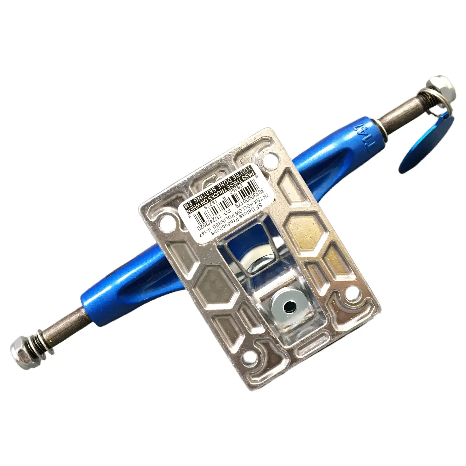 تراکهای اسکیتبرد Thunderمدل Hollow Lights، مدل حرفهای Kyle Walker با رنگ آبی، دارای محور و کینگپین توخالی با پایههای فورج شده. طراحی شده برای سرعت بیشتر، وزن کمتر و کنترل فوقالعاده در حرکات.